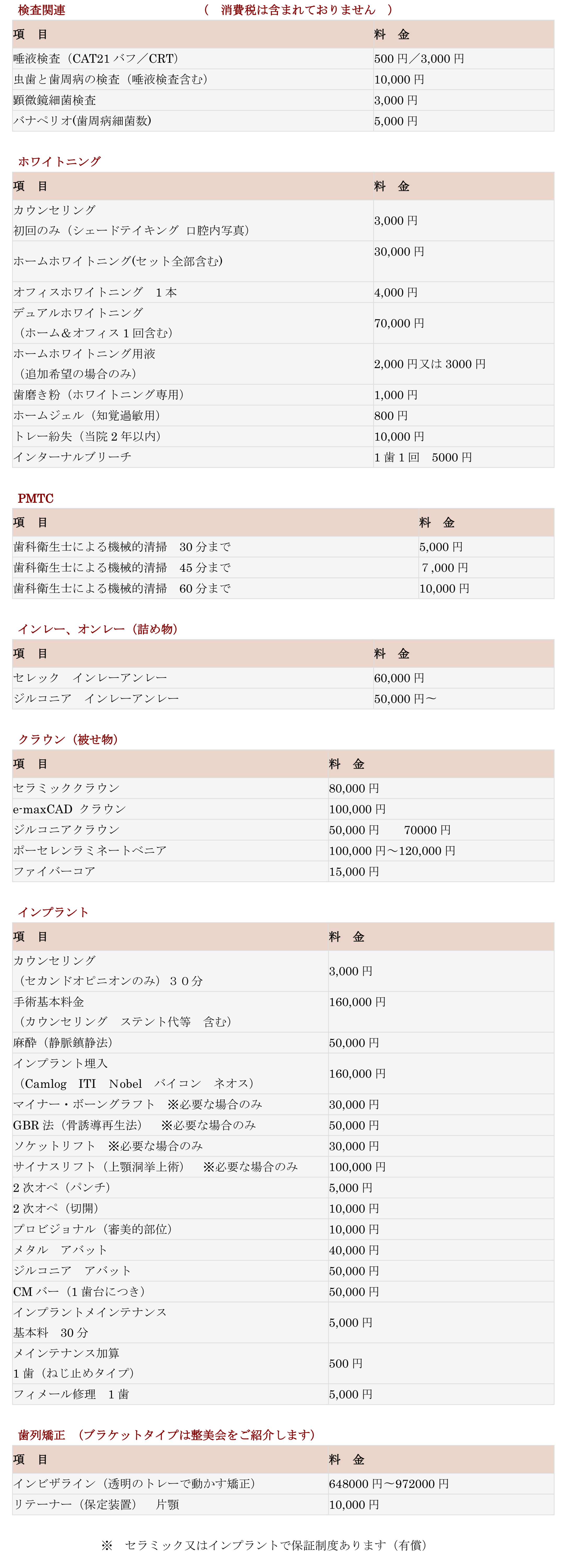 治療にかかる費用一覧
