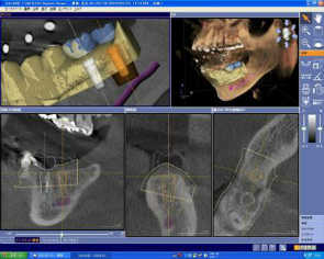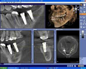 歯科用CTでは、従来のレントゲンとは違い、骨の状態(質や厚み、高さ、形態など)を得ることができます。そのため、的確な位置、角度、深さにインプラントを埋入することができます。